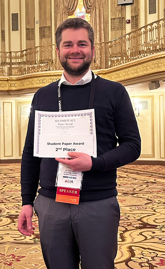 Wir freuen uns, den wohlverdienten Erfolg unseres Kollegen, Thomas Kaster vom Lehrstuhl für Lasertechnik LLT an der RWTH Aachen University, bekannt zu geben: Thomas hat den 2. Platz beim ICALEO '23 Student Paper Award erreicht!